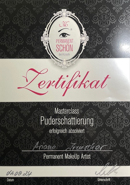 - Zertifikat: Masterclass Nadiia Dmitrieva Lips & Brows
