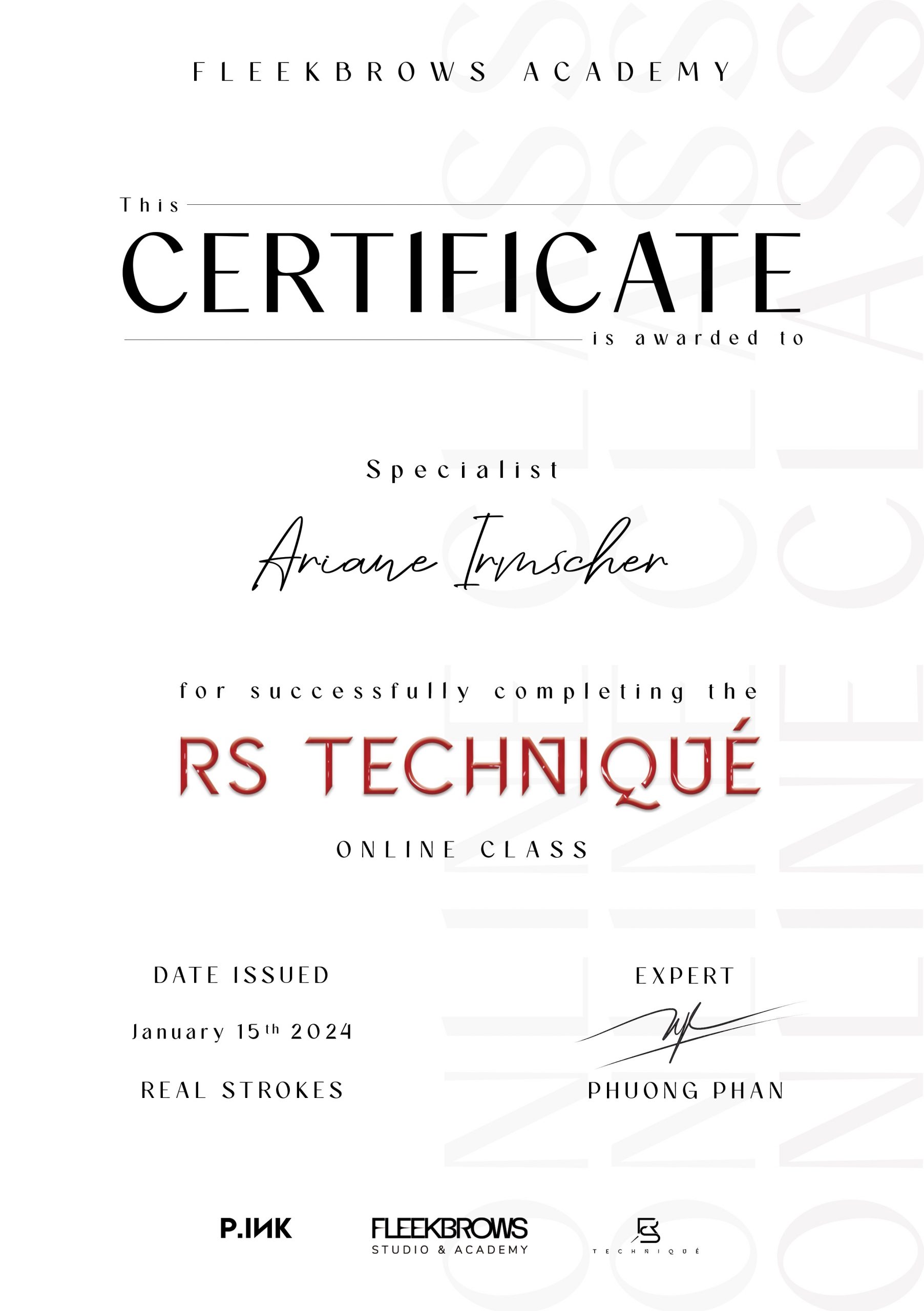 - Zertifikat: Real Strokes Techniqué